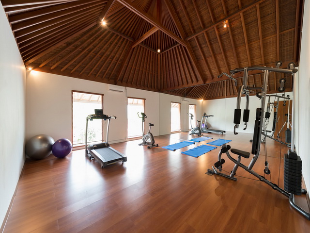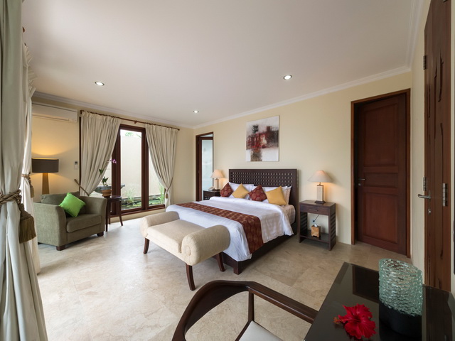 The large and comfortable air-conditioned TV lounge lies downstairs between the two guest bedrooms and makes a beautiful respite from the Bali heat when you want to kick back in the cool and shade. Sink into its yielding couches and easy chairs or beanbags, and read a book or watch a Hollywood blockbuster on the massive, surround-sound-equipped flat-screen TV while munching on popcorn. Alternatively, this room will keep the kids entertained for hours, giving you more time to laze in the sun or take a dip in the pool.
