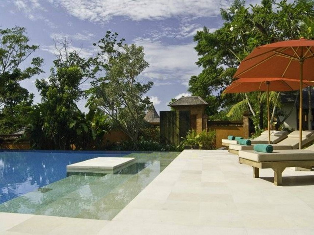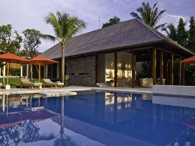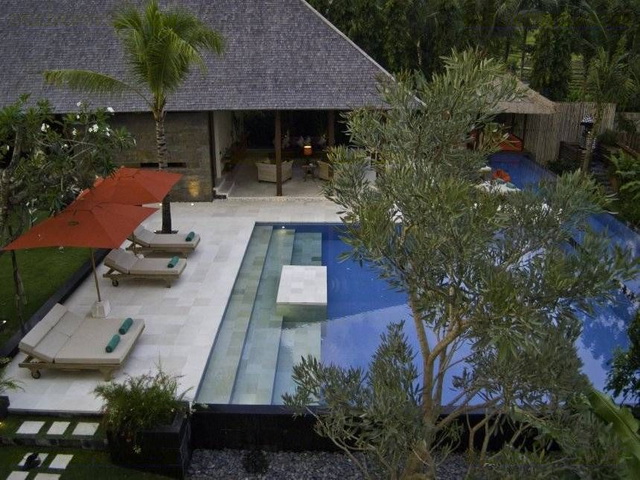 Astika Toyaning was completed in mid 2008 and with total space approx 1,600 sq meter with excluding car parking, common areas, etc.) 4 bedrooms (three double beds one twin bed) separate kitchen pavilion that seats 12 for dinner, open living area and multimedia room. There are loungers for 8 people around the pools as well as a Bale that sits at the end of the lap pool. The large outside living area overlooks both pools.