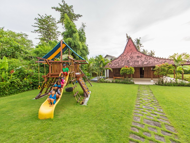 The villa as an ideal location for Couples and family to enjoy time together using the villas many facilities including large Tree House Swing set, 80 m2 Kids play room, Antique Joglo to take in the evening sunsets and a very large garden area for kids and grown up’s to enjoy.
