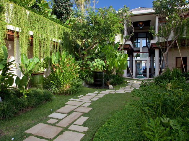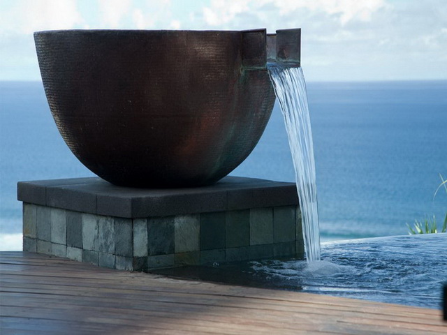Upon entering the internal two-tiered gardens you will be welcomed by twin monumental Buddha statues symbolizing peace and harmony. Within the tranquil garden you can enjoy some of Bali's tropical fauna as well as 1.5 metre overflow urns planted out with water lilies.