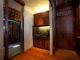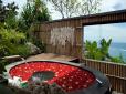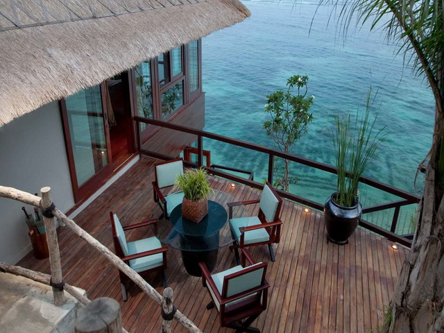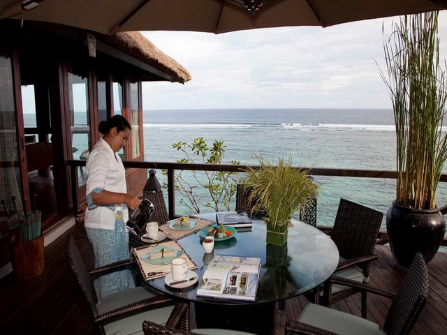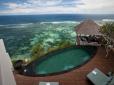 The fourth bedroom suite, a separate romantic Balinese style Cabana is nestled into the hill on the bottom of the cliff and perched just steps above the white sand beach and crystal blue ocean. One can access the Cabana by walking down the Bidadari Cliffside stairway or riding the only private inclinator in Bali, exclusively designed for this ocean view villa Bali -style. The Cabana offers a true relaxed Balinese luxury experience with striking views of the ocean as well as a secluded outdoor shower.