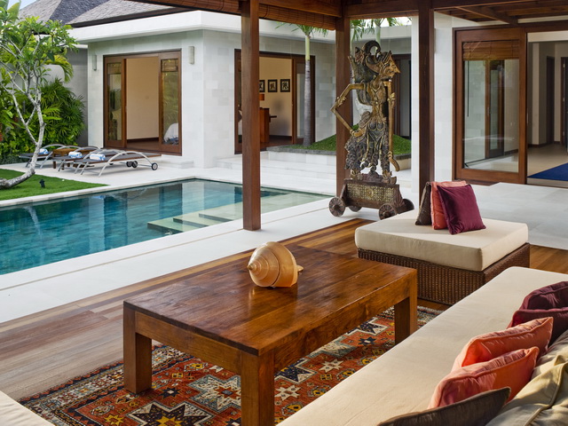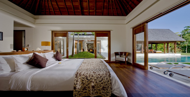 A large, sliding wall panel separates Bima from the other master villa, Yudhistira. Guests who book both villas can request the staff to open the wall panel to provide a huge garden area with the two swimming pools – ideal for family groups requiring four bedrooms and plenty of space for the children to have fun. This open set-up also lends itself to weddings and birthday parties.