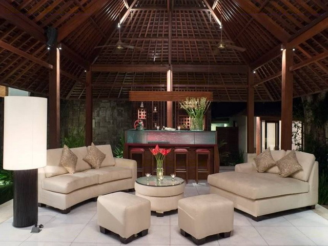 The main pavilion has a dining area for 8 to 10 guests, a sitting area that gives you a full view of the Villa, and a fully equipped custom bar. Conjure up your own cocktails and relax to your own kind of music on the iPod compatible hifi, or have a party and let our friendly staff prepare the food and drinks for you. If you are planning a wedding, Villa Bunga Pangi is a perfect exotic location for the ceremony and reception.