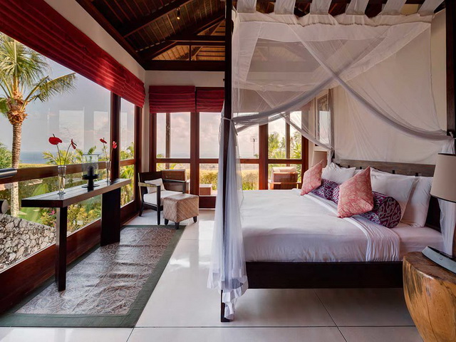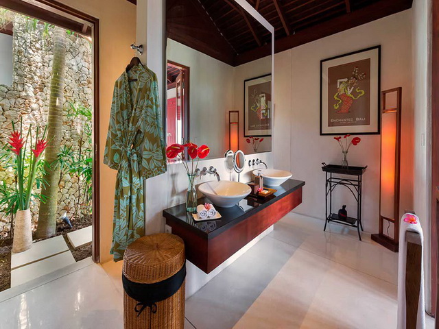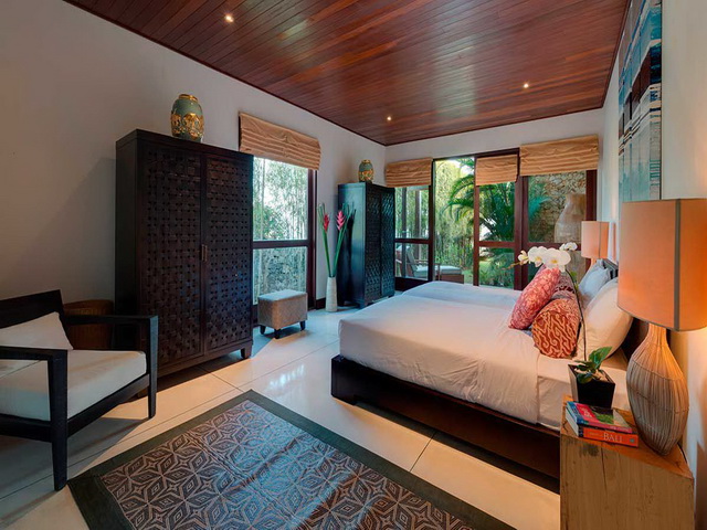The master suite exudes majesty. Finished to the highest standards, the suite runs the entire width of the villa. Beyond the creature comforts, you will be treated to stunning views over the Bukit and ocean beyond. A sanctuary within the retreat, you are invited to indulge in an antique four-poster bed adorned with sumptuous pillows, discover the large walk-in wardrobe, or simply luxuriate in the oversized bathtub watching the sun go down.