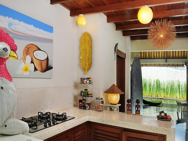 Guests will surely enjoy spending long days in their beautiful garden surrounded by high tropical trees, flowers, plants, green grass, fish ponds with fountains and Balinese parasols. Guests can swim laps in the crystal clear swimming pool lounge on the sunbeds catching a nice tropical tan or sit together in the shaded gazebo enjoying some delicious drinks.