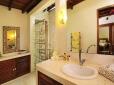 The 2 air-conditioned guest bedrooms are situated within the main pavilion, one wears fresh green colors and the other warming yellow. There are mosquito-netted queen-size bed, wardrobe closets with safety deposits and the en-suite bathrooms are semi-open featuring rain-showers, washbasins with guest amenities and toilets. The mezzanine loft is also equipped with a queen-size bed so it can function as an extra bedroom for larger travel parties.