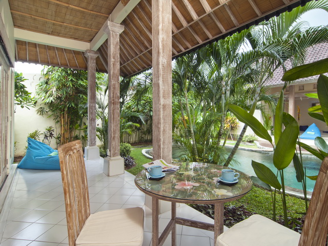 The villa has an ideal location in a quiet lane of Seminyak, Bali's most happening beach resort destination. You are close to Sunset Road and to the Seminyaks main shopping street with lots of designers shopping boutiques and the Bintang supermarket. Seminyak beach with all its charming colourful beach bars such as La Plancha is a fifteen minute walk away or a five minute taxi ride. There are lots of local eating places and restaurants on the way. For for splurging out head to the renowned, iconic 'eat street' in the prestigious Oberoi district, offering excellent high-end dining venues such as Ultimo and Ku De TA beach club.