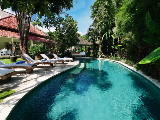 Located close to the beach and the popular Seminyak, area on Bali's southwest coast. The villa is secluded behind a high wall and set within 1500m2 of beautiful landscaped gardens, perfectly manicured lawns and two separate free form swimming pools. Our dedicated and discreet Balinese staff, including a chef, will provide the warmest of welcomes upon arrival ensuring complete privacy during the duration of your stay.