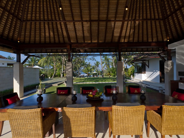 Living pavilion; dining pavilion; outdoor dining for 8; poolside balé.