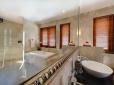 All of the bedrooms – two upstairs and one downstairs – have full length glass doors that can be opened to create a sense of space and airiness. Downstairs they open directly to the garden and pool area and upstairs they open onto the terrace which is surrounded by bougainvillea and other lush tropical plants. Two are furnished with grand king-size four-poster beds, with the third bedroom offering twin beds and all boast an iPod dock, bar fridge, TV and DVD player. Each has a plush marble ensuite with rain shower and bathtub.