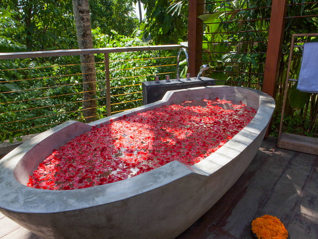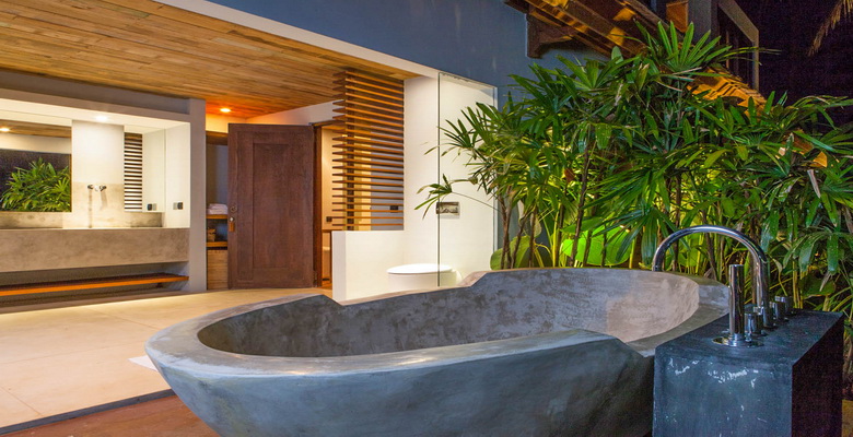 • Huge semi-outdoor bathrooms with shower and bathtub