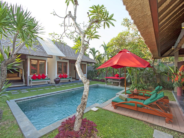 Villa Malika is part of villa complex of three with 3 & 2-bedroom thatched villas, each with a private swimming pool, hidden away in the rice fields, just ten minutes' drive from the beach on Bali's south western coast.