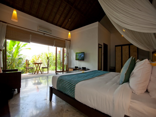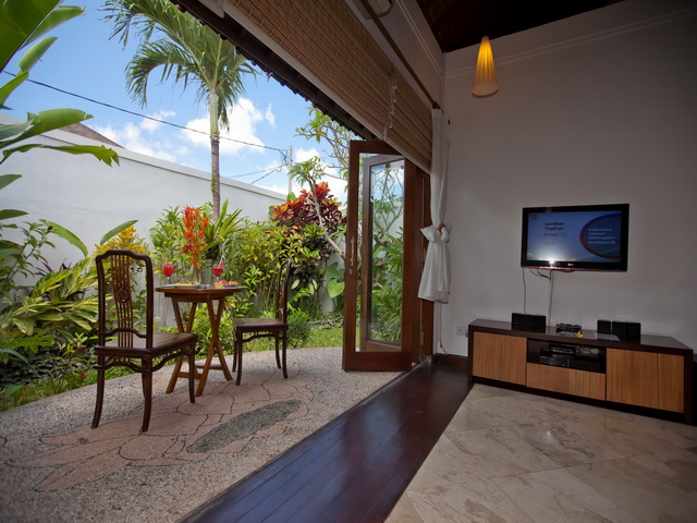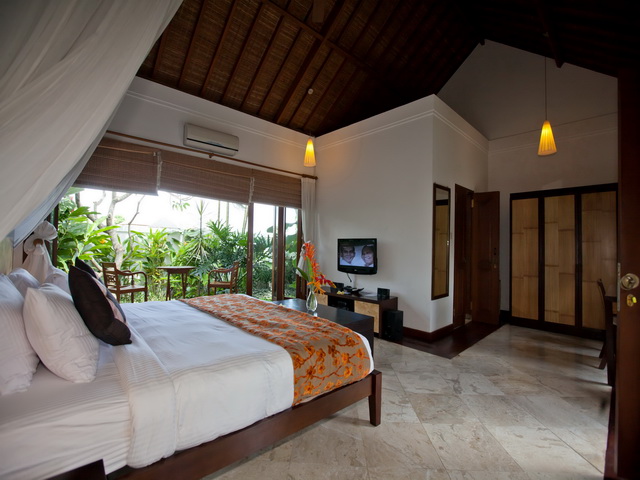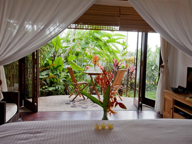 Air conditioning, CDs, DVDs, and a 32 inch flat screen television with 31 inch Private outdoor showers – providing a delightful relief in Bali’s humid tropical climate – are offered in four of the rooms which also have their own private gardens, stunning large bathrooms and unique bathtubs built for two.