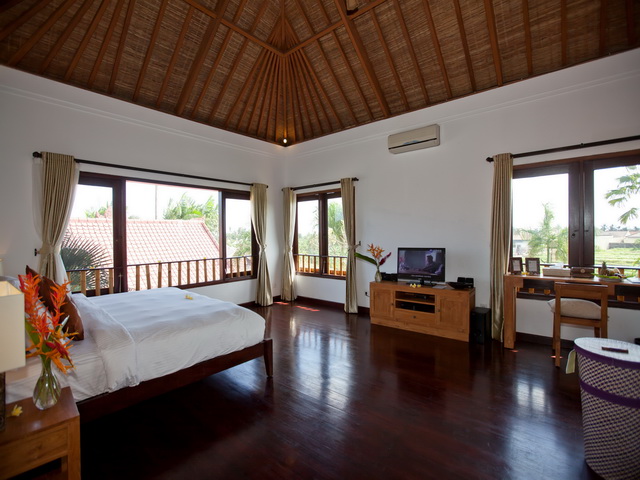 The property consists of five bedrooms which have been carefully designed and are beautifully positioned maximize the amount of the Balinese light and breeze. One of the bedrooms is set higher on the second floor which gives you breath-taking views across the rice paddies. The spacious deluxe rooms each have a Queen Size bed with a separate stone sunken bath tub and separate outdoor shower.