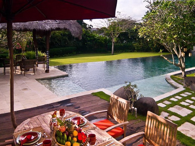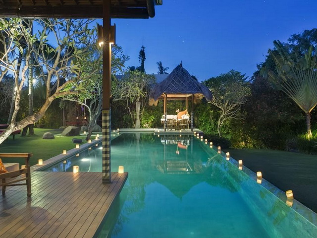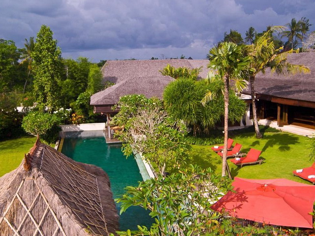 The exotic charm of this tranquil haven is further enhanced by the gracefully landscaped grounds holding a large swimming pool and lotus ponds. A compulsive attention to the details is obvious throughout the grounds and interiors. The furnishings and decorations are the culmination of years of collecting traditional cultures by the owner. Indonesian antiques, traditional stone carvings, flamboyant woodcarvings, are just some of the ornamental elements on display throughout the buildings. Completed in early 2007, the architecture of this villa succeeds in creating an ambience of lavish grandeur, while representing a sensitive appreciation of local culture.