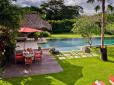The Main House consists of three air-conditioned bedrooms completed with en-suite bathrooms; a large dining area over viewing the swimming pool and garden; a warm welcoming spacious living area; air-conditioned TV room; a fully equipped kitchen with small comfortable dining area and pantry room on the other side. A modern design wine cellar between the kitchen and main dining area adds the luxurious feeling of the villa. The leisure of the living room is added by the pool table on the upstairs room. On the other side of a lush garden, lays the second building for the Guest Wing consists of two air-conditioned bedrooms also completed with en-suite bathroom, a living area, kitchen and a plunge pool. The two buildings are connected with a lush tropical garden which holds a thatched roof bale and a large overflow swimming pool. The two buildings share an enclosed car park which can hold several vehicles. All the modern equipment such as large TV screen, stereo sound system, DVD players as well as wireless high speed internet connection is provided to ensure the necessary international high level of comfort.