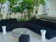 Private outdoor seating area/sofa and small garden. Equipped with a fan for cooler days.