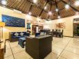 A closeable main pavilion with air conditioning overlooks the pool and gardens, housing the living space, kitchen, dining area and two air-conditioned bedrooms. The living area, which has a large screen television as well as a DVD and CD player, also has sofas which provide a good space for gathering as a family or group of friends. Adjoined to this is the dining room, which is furnished with an elegant table and chairs. It is close enough to the living space giving guests the option to enjoy a movie while eating. The fully equipped kitchen in the corner of the living room has a stove, a microwave, a coffee maker, a juicer, a water dispenser, cutlery and china sets.
