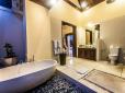 Two of the four bedrooms are attached to the main living space. The other two bedrooms are located within twin guesthouses which are separated by beautifully landscaped gardens. They feature a king sized bed, one of which can be converted into twin singles, dependent on your needs. All rooms have a safety deposit box in the wardrobe, air-conditioning, ceiling fans as well as en-suite bathrooms, some with a bath tub and all with an open shower along with exclusive guest supplies such as soap and shampoo.