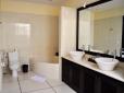 On the ground floor is an extra-large bedroom overlooking a large lawn area and beautiful garden and mango tree. The bedroom has a king sized bed, large flat screen TV and DVD player and en-suite. This bedroom also includes a king sized sofa bed to accommodate extra guests who come to visit