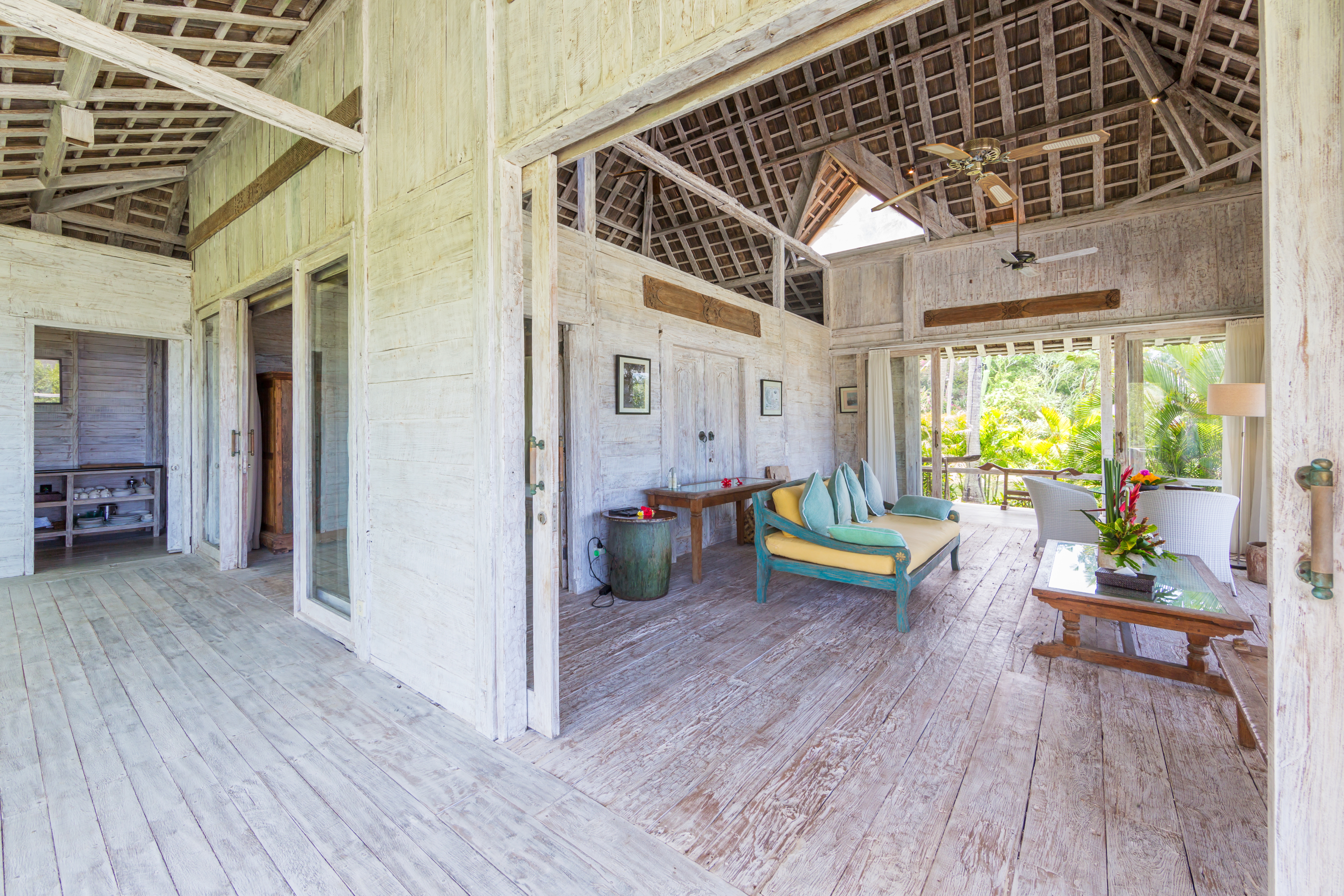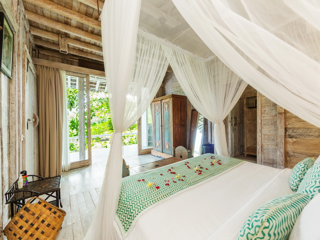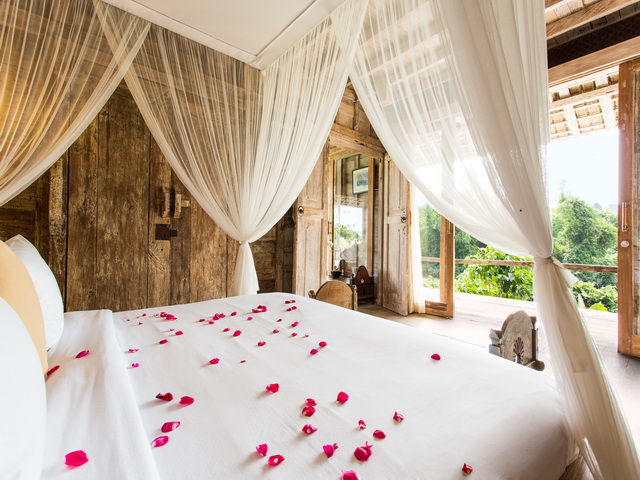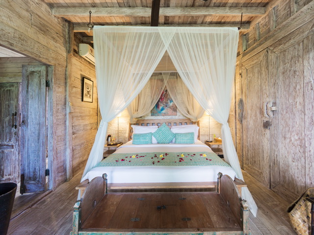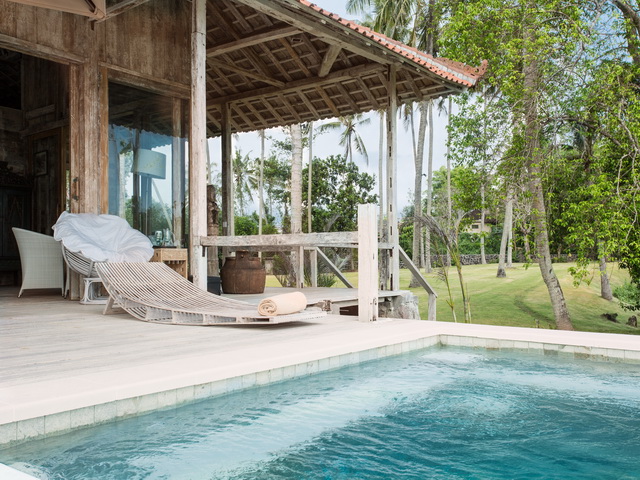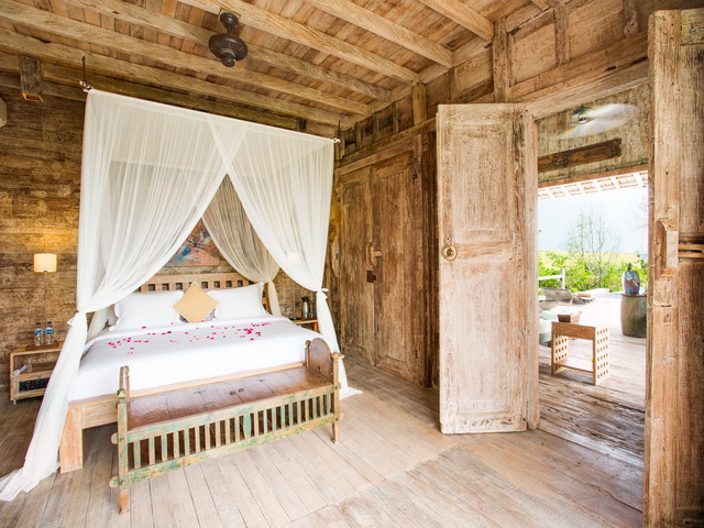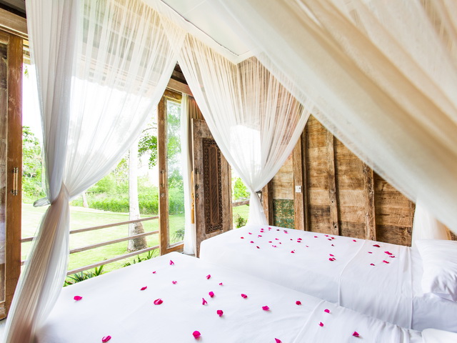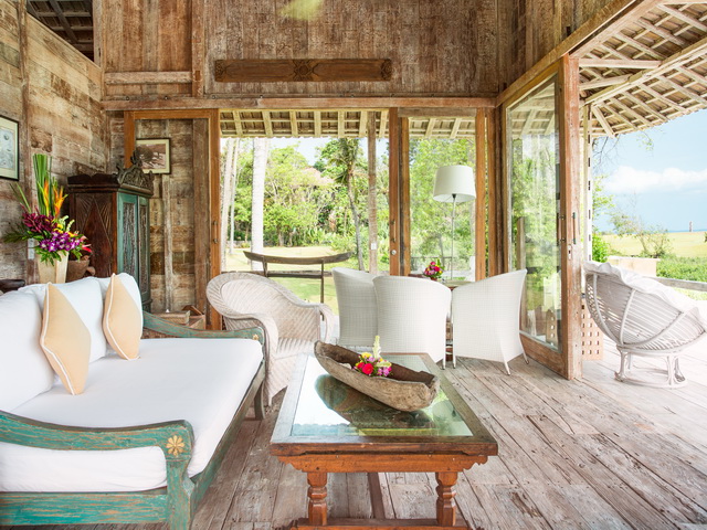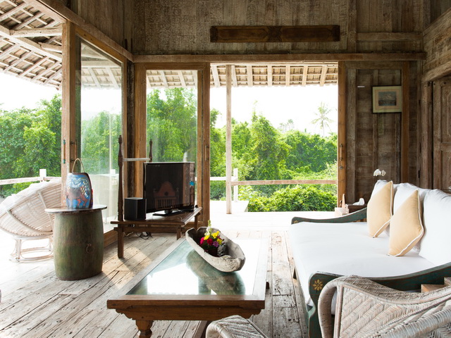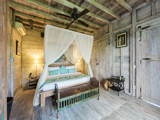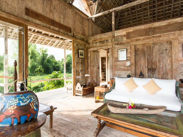 Construction is of old teak wood combined with coconut timber. The villa provides 2 Air