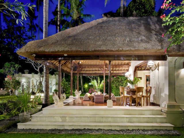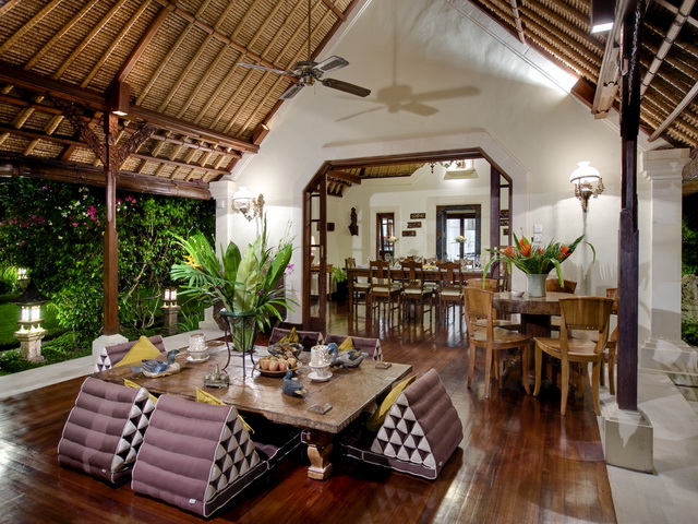 Resting on 3600 square metres of land in a magnificent tropical garden, Taman Sorga can sleep up to 12 guests. It is comprised of a main two-storey house furnished with Indonesian antiques, a contemporary styled two-storey guest wing, a traditional Balinese Wantilan living pavilion, a state-of-the-art gourmet kitchen, an indoor/outdoor dining room, a gym, a pool house, and a 17-metre freeform swimming pool.