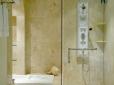 Adjacent is a large dressing room with loads of storage and hanging space, and the ensuite bathroom in cream marble is fitted with a large Jacuzzi bathtub, positioned centrally, twin washbasins, a bidé, a toilet, and a state-of-the-art Appollo massage shower, incorporating a multi-positional overhead shower, a handheld shower, and eight hydro-massage body jets.