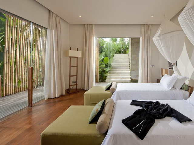 Villa Tantangan is unique because it is, to our knowledge, the first beach villa in Bali of this size to be completely off the grid. To reach this unique private villa, the last 3 km (about 10 minutes) let you experience a typical drive through the rice fields. A more adventurous access is also possible by the beach. This stunning villa is located on 7700 square meter land with a panoramic view over the ocean, just next to the famous Tanah Lot Temple. The land is 15m above sea level. The sunsets are spectacular and once you are in this villa you do not wish to leave. The ultimate villa for complete relaxation and privacy. Villa Facts Built in 2009 Bedrooms 3, No extra bed available Surrounding beachfront Swimming pool 20 x 5 meters Distance airport 60 minutes drive Distance beach at the beach Villa Description Technical info The media room is a more protected area with floor to ceiling windows where you can enjoy reading, watching TV/DVD or listening to music (Bose iPod docking). It is adjacent to the Living and Dining area Staffing 3 gardeners, cook, 3 security, 2 housekeeping and 1 pool maintenance. Other info A car and driver is included in the rental of the villa for 8 hours a day continuously excluded fuel. Additional time will be paid directly to and at a rate per hour agreed with the driver. |