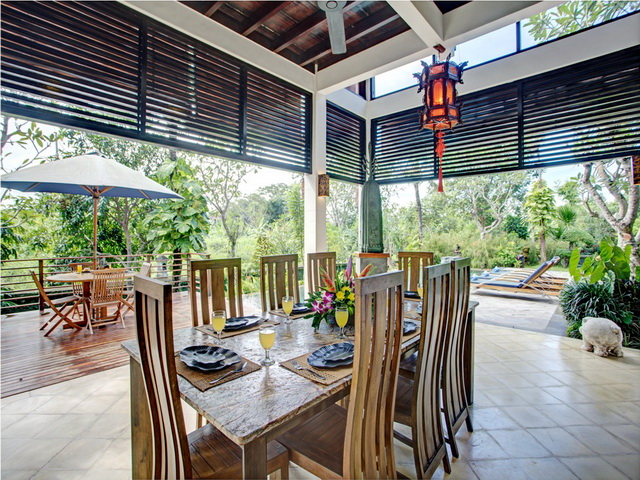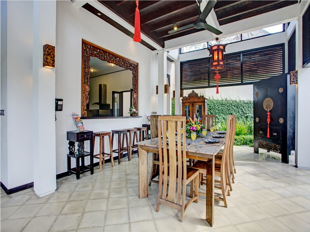 The villa has flat-screen satellite TV and sofa seating area in a semi-open living room. Bright and airy bedrooms are furnished with antique furniture including a safety deposit box, mosquito net, desk and air-conditioning. En suite bathrooms come with a shower and free toiletries.
